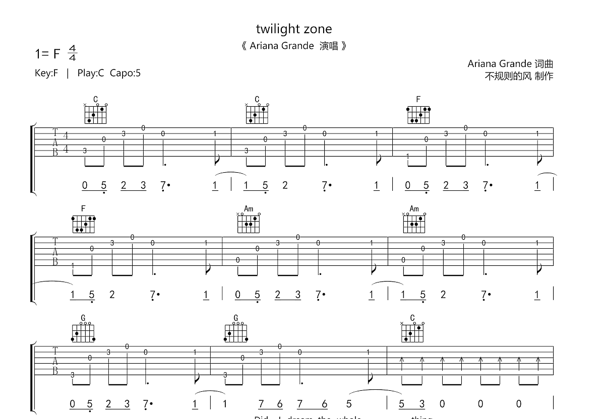 按原版制作,C调吉他谱,变调夹夹5品格。“更多高清曲谱、需要重新排版页面的、曲谱定制、可直接私信联系我”----如若谱子有个别问题,欢迎指出,我会及时修正,感谢支持