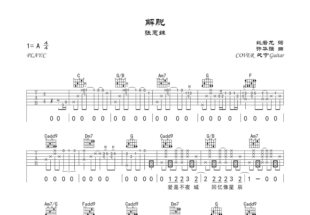 《解脱》吉他纯净版...戈宁Guitar Cover,根据原视频细节完美扒谱,非常适合单吉他弹唱,与试听音频完全一致,请试听满意后再进行购买