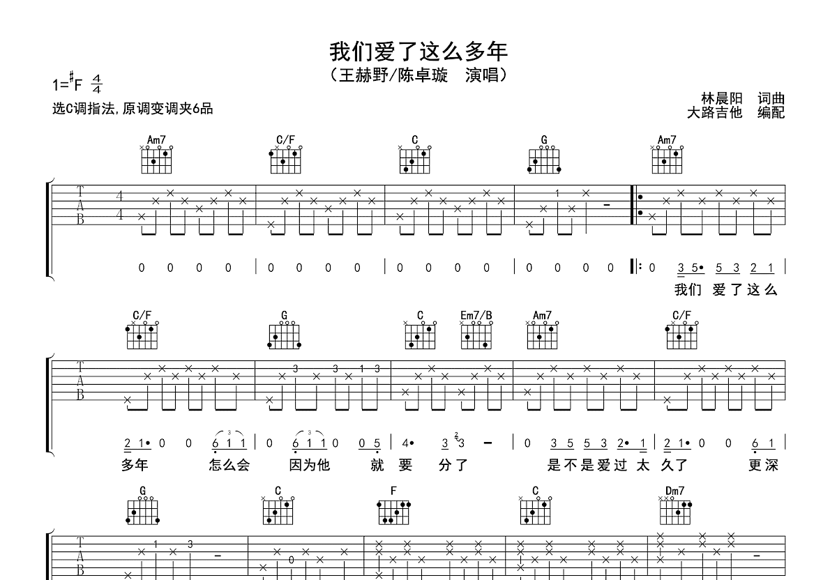 ★王赫野/陈卓璇《我们爱了这么多年》吉他弹唱谱