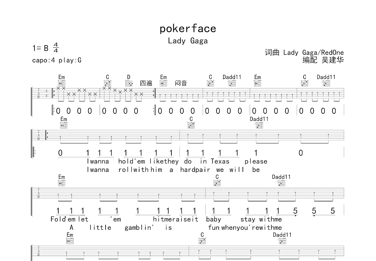 主观编配适合个人弹唱。节奏型及反复可以自由处理。