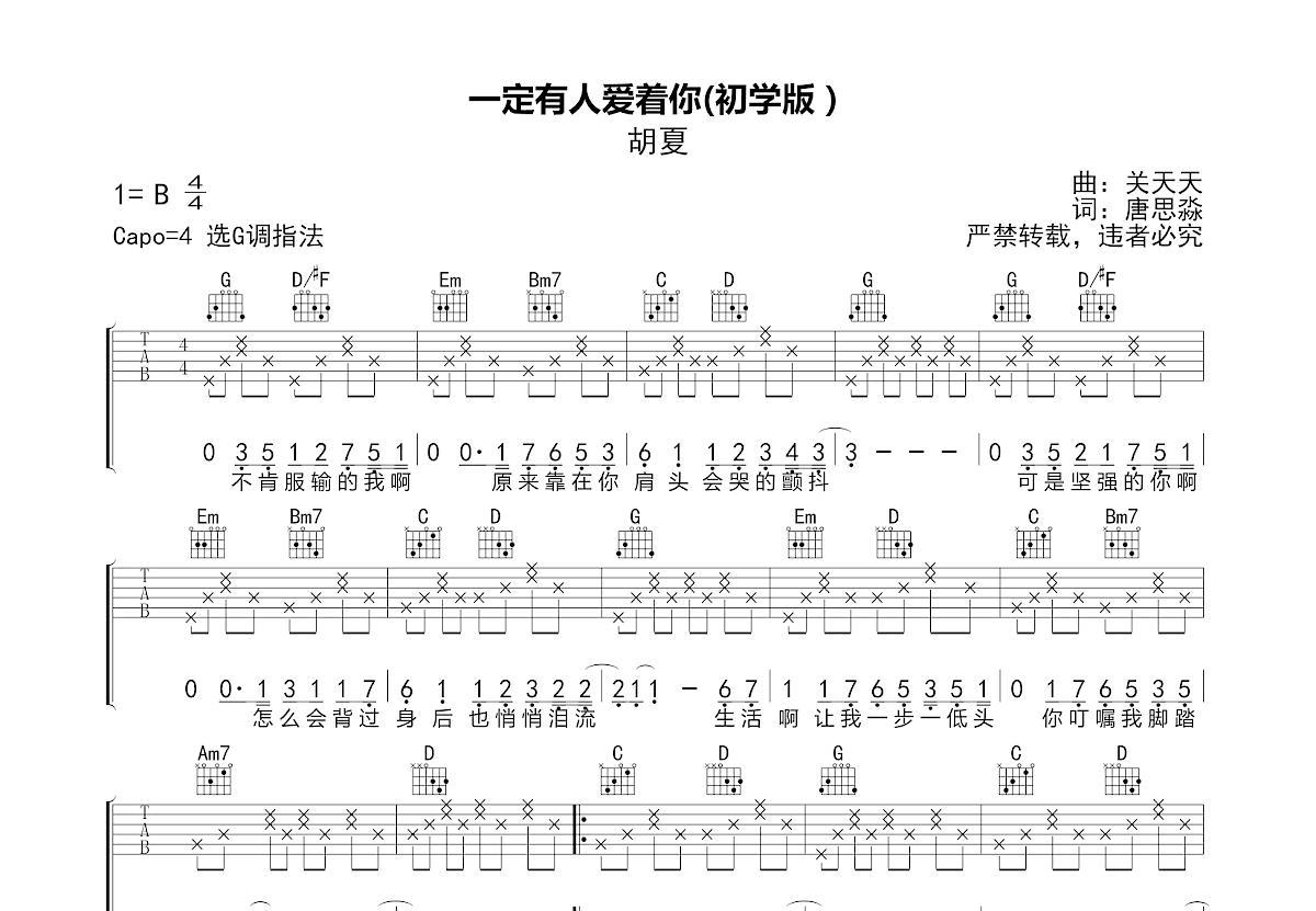 一定有人爱着你|胡夏|吉他弹唱谱|免翻页|音频随后上传