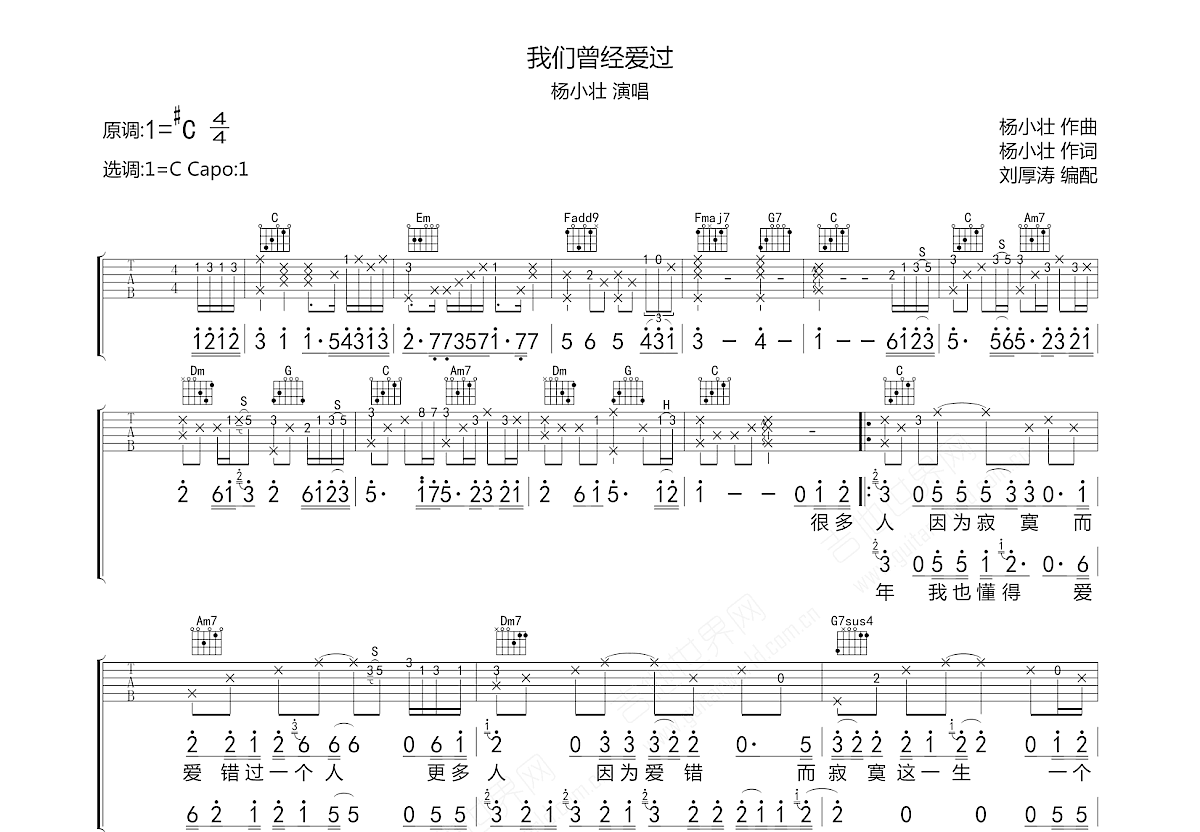 本谱根据杨小壮《我们曾经爱过》版本改编,单吉他弹唱谱,免翻页排版。