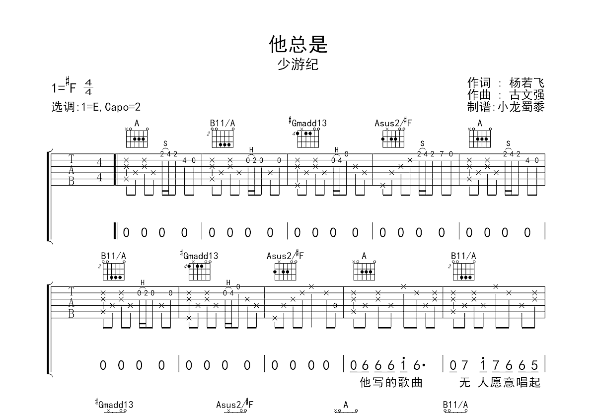 | 曲谱包含 | 和弦指法图;六线谱;简谱;歌词 |