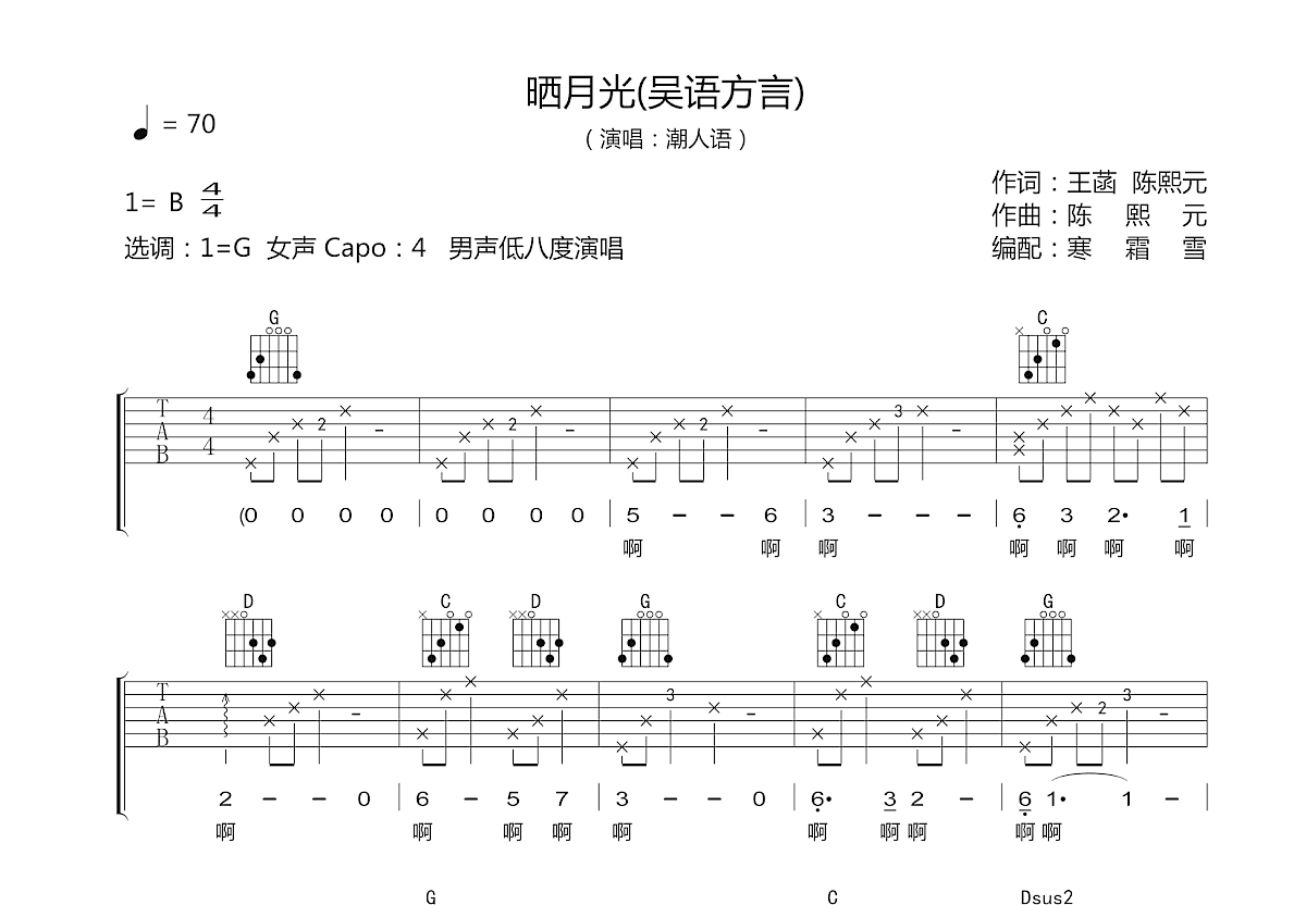 1.《晒月光》是用海宁盐官方言演唱的吴语民谣歌曲,由潮人语在2020年5月22日发布,改编成吉他弹唱谱;