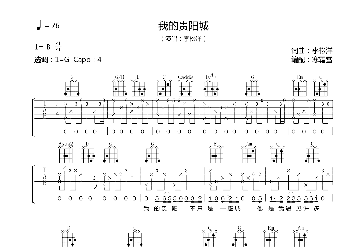 1.李松洋的《我的贵阳城》吉他弹唱谱;