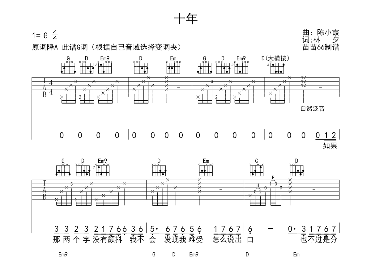 本曲只适合单把吉他弹唱,比较接近原版,难度在几个大横按,稍加练习没问题的