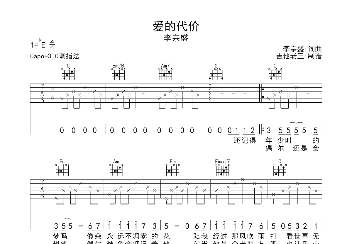 | 曲谱包含 | 和弦指法图;六线谱;简谱;歌词 |