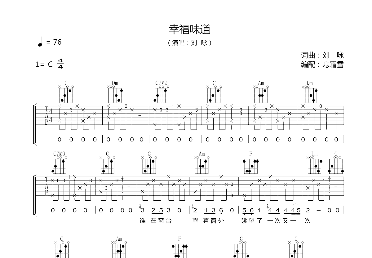 1.刘咏的《幸福味道》吉他弹唱谱;
