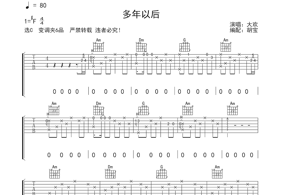 | 整份曲谱最快处和弦转换频率 | 不快于两拍换一次 |