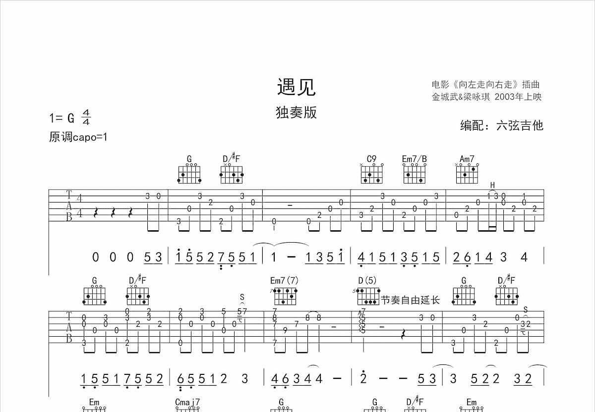 影视金曲独奏曲集之 遇见 原版编配 简单好听