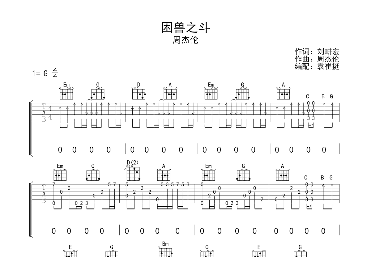 周杰伦《困兽之斗》G调弹唱谱,个人主观编配,试听喜欢才买。