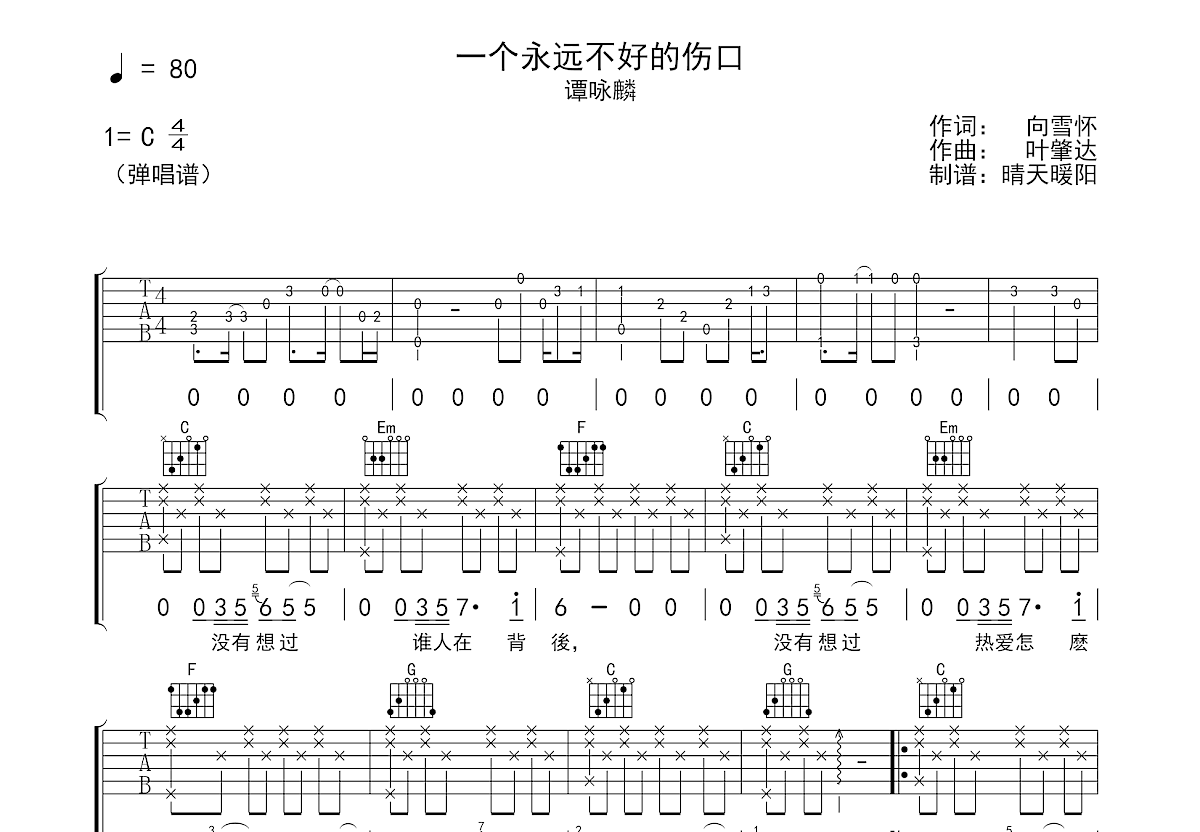 | 曲谱包含 | 和弦指法图;六线谱;简谱;歌词 |