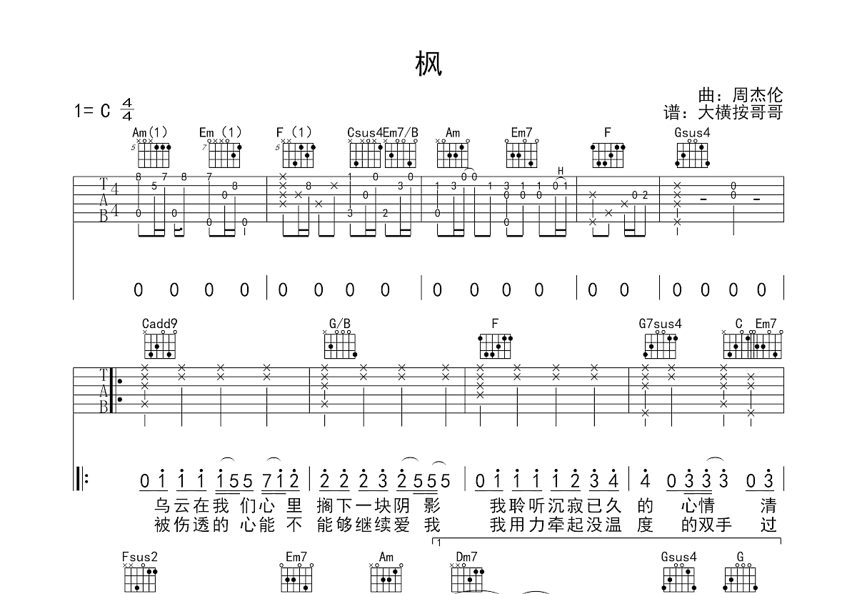 | 曲谱包含 | 和弦指法图;六线谱;简谱;歌词 |