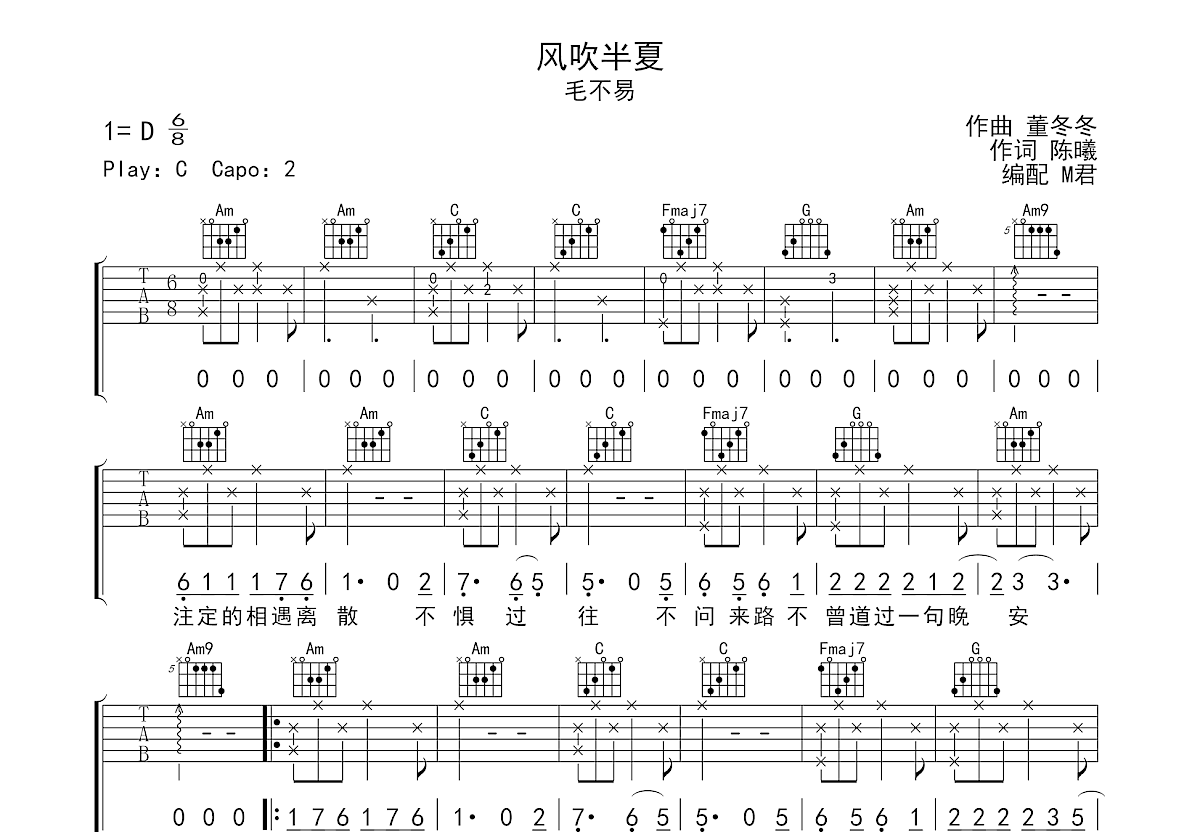 | 曲谱包含 | 和弦指法图;六线谱;简谱;歌词 |