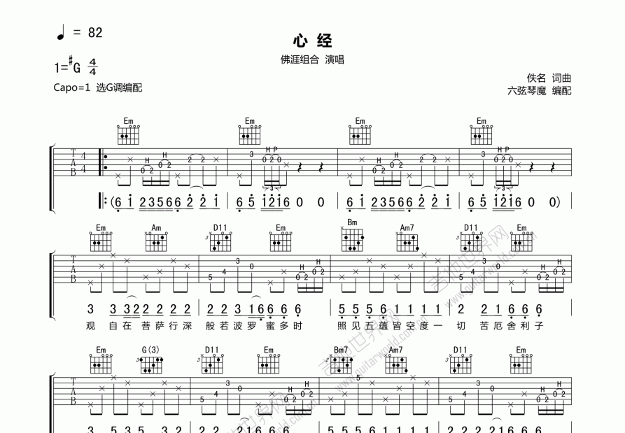 2、原曲为#G调,选G调指法编配,变调夹夹一品。