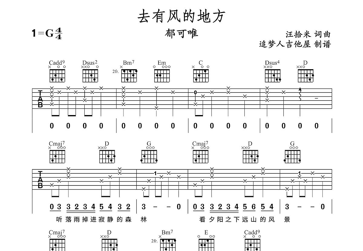 | 曲谱包含 | 和弦指法图;六线谱;简谱;歌词 |