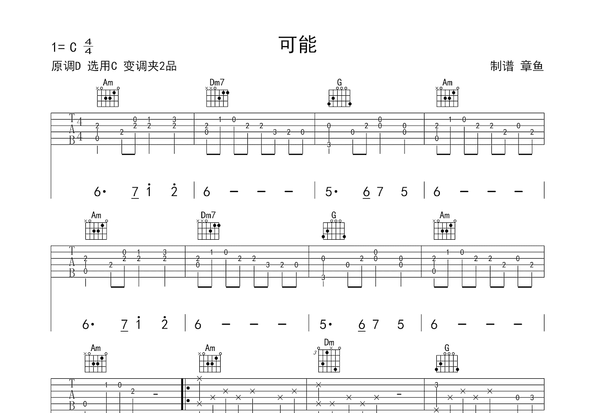 严格按照原曲旋律节奏编配,C调指法保留原曲感觉,易上手适合初学者,男生可适当夹变调夹调整。
