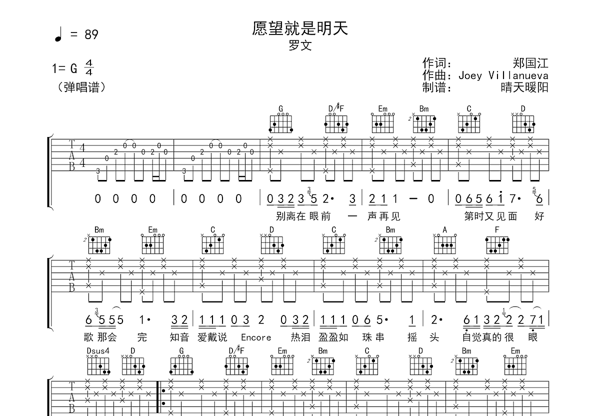 | 曲谱包含 | 和弦指法图;六线谱;简谱;歌词 |