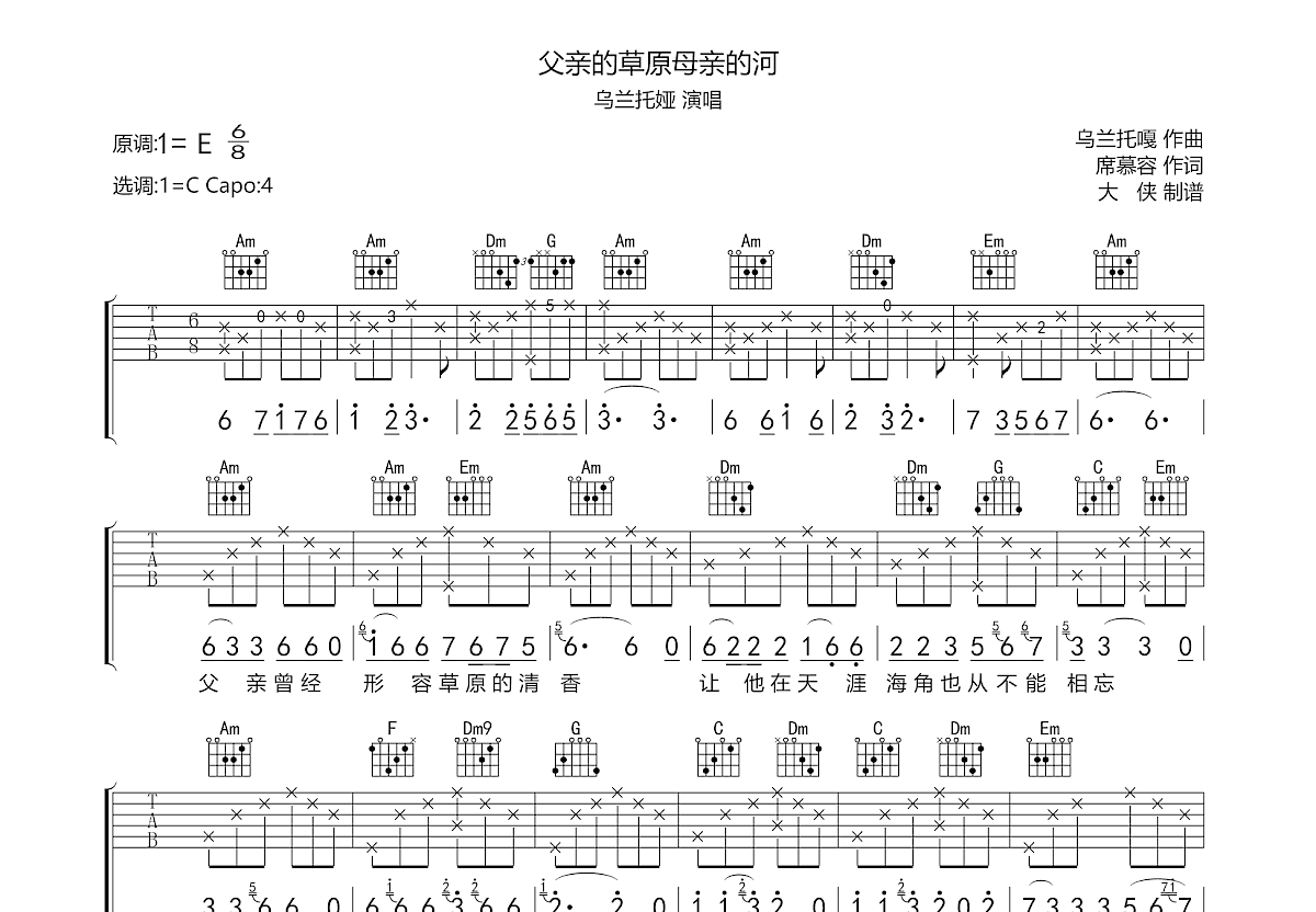 ②本谱选用C调指法编配,示范弹唱E调(变调夹夹4品),有些自主改编,介意勿拍;