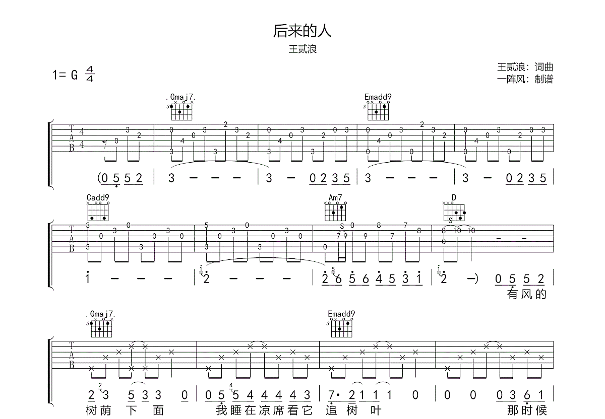 | 曲谱包含 | 和弦指法图;六线谱;简谱;歌词 |