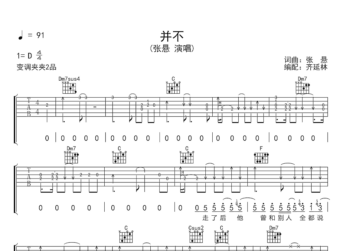 张悬《并不》大体按原版编配