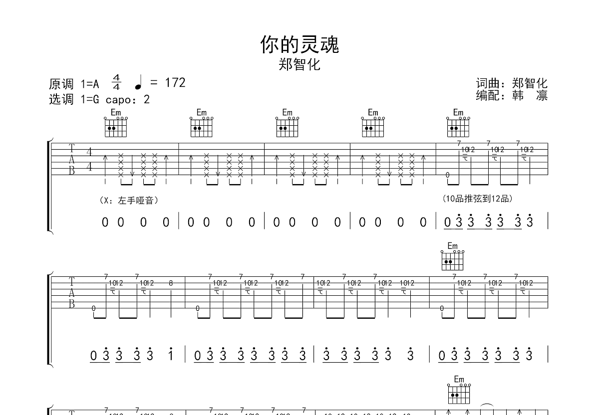 《你的灵魂》郑智化,1=A,选G调,capo:2,《堕落天使》专辑中歌曲,吉他世界独家发售。吉他/演唱:韩凛