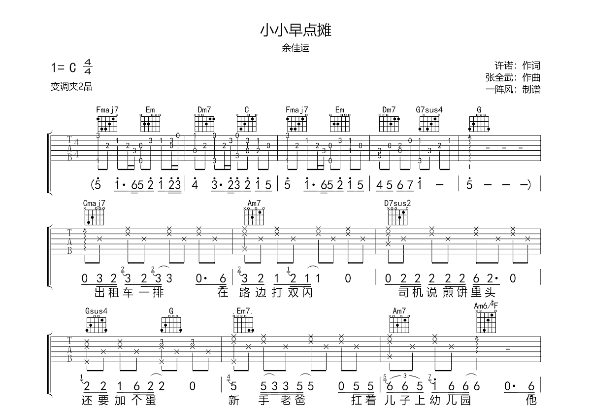 余佳运《小小早点摊》吉他谱。