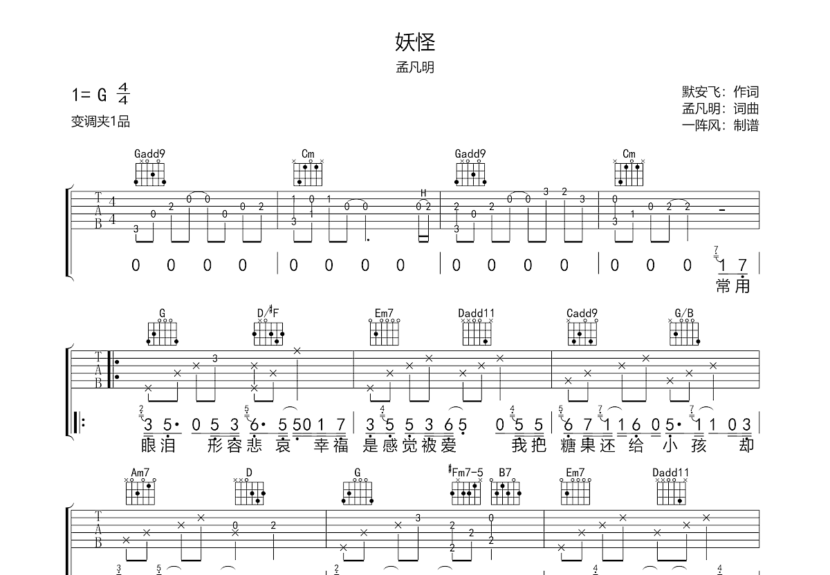 采用G调指法编配,变调夹1品。编配前间尾奏 适当改编简化规整指法,分解扫弦简单好听容易上手 适合一把吉他弹唱。试听音频仅为弹唱片段,感谢支持一阵风制谱。