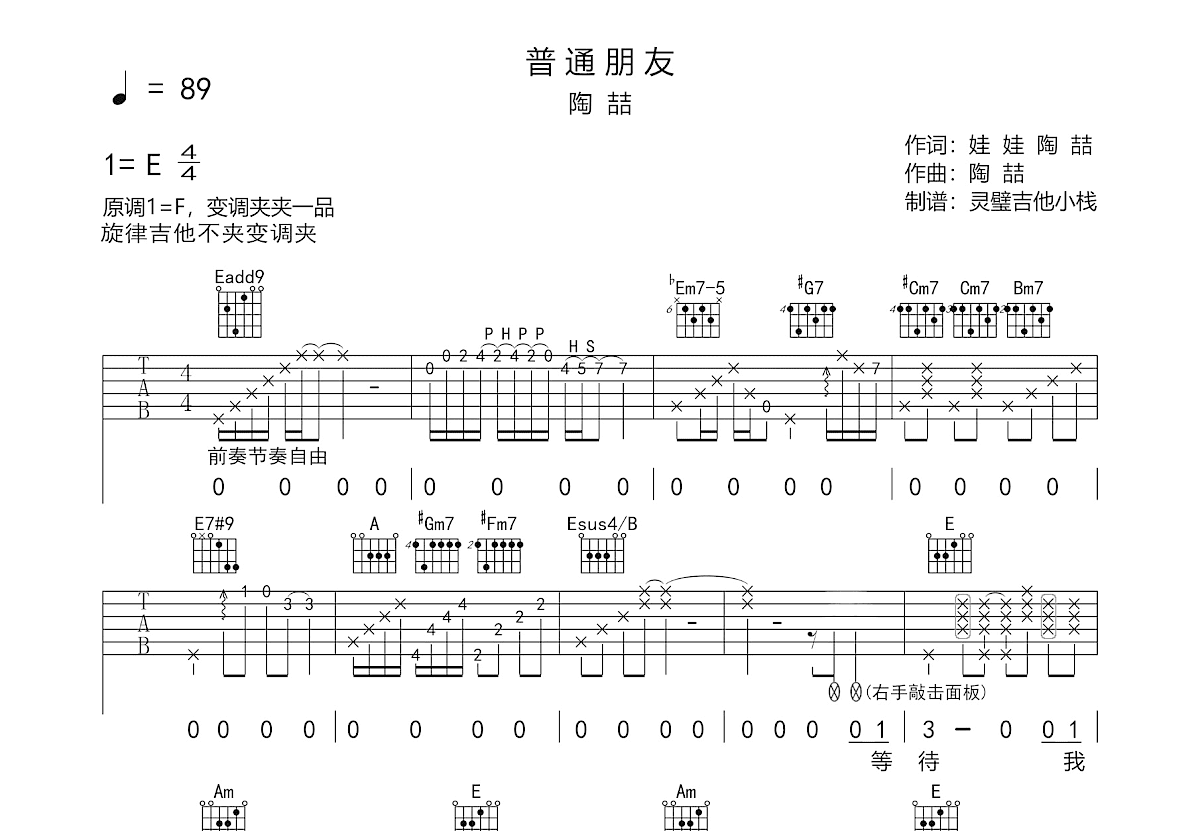 几乎应该是目前全网最接近专辑版原版的吉他弹唱谱了!